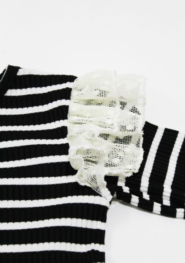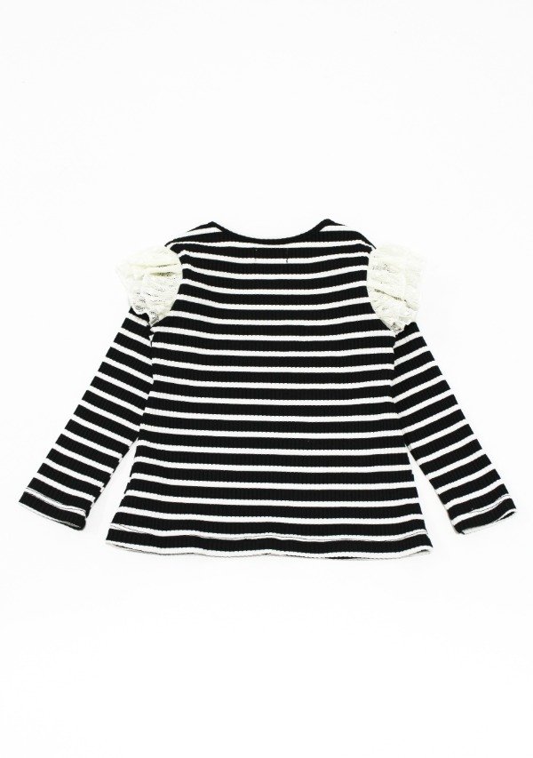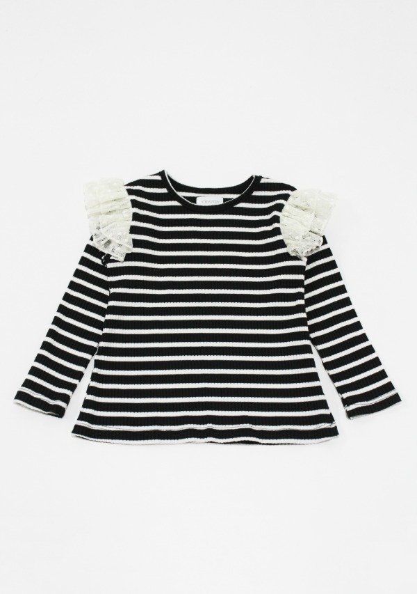 Remera manga larga de morley rayado negro/ blanco. Detalle de bordador en las terminacion. Tull doble en los hombros.