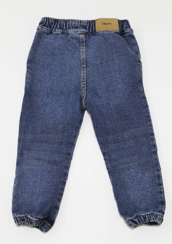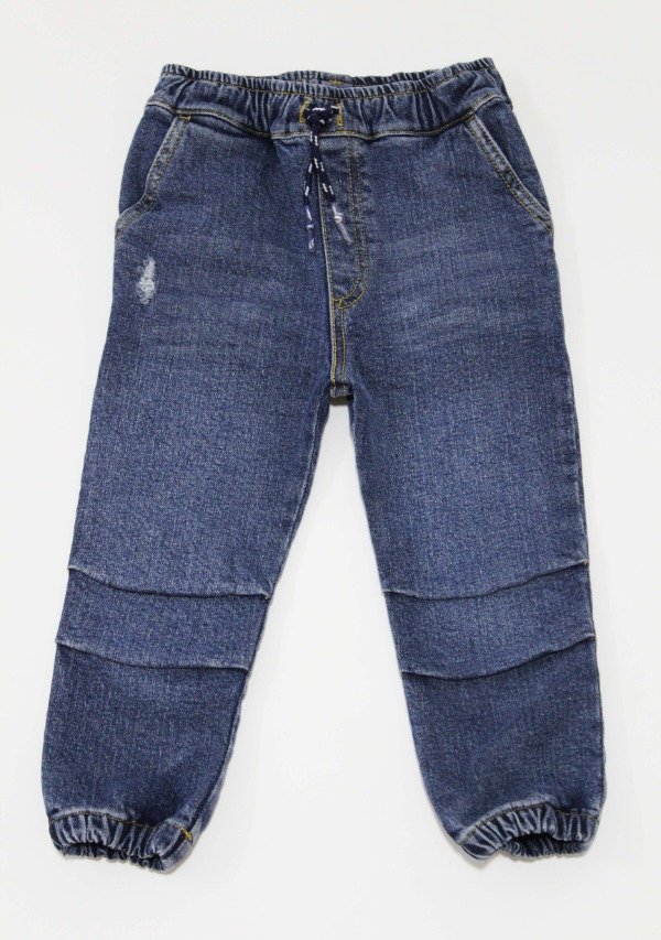 Jogger de jean con cintura y puños elastizados. Tiene cordón todo alrededor de la cintura. Bolsillos delanteros.