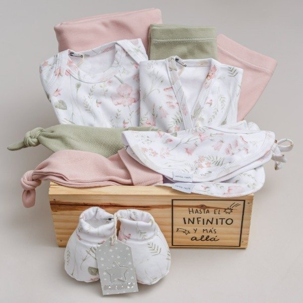 Este Pack de Bienvenida de 10 piezas es la elección ideal para recibir a tu bebé en camino con todo lo necesario para sus primeros días. Presentado en una súper cajita de madera, éste pack combina estilo y funcionalidad, asegurando que tu bebé esté cómodo y divino.