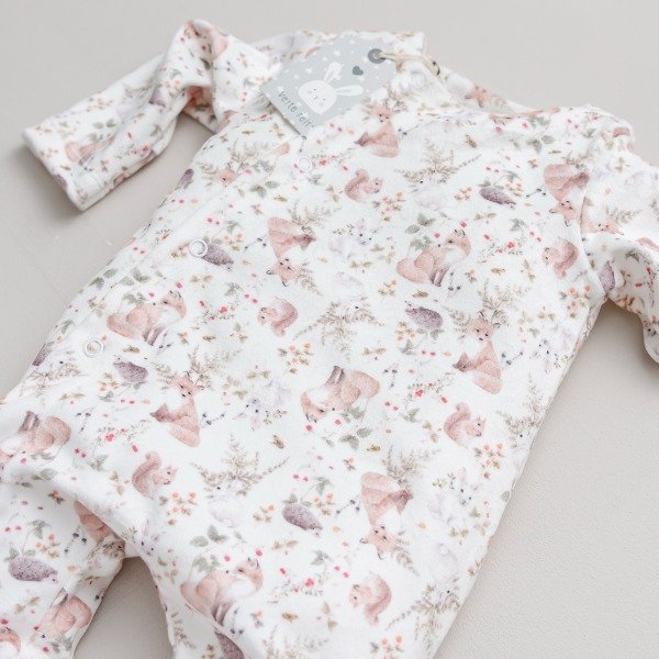 Diseñado con apertura total frontal, lo que facilita el cambio de ropa sin necesidad de manipular la cabecita de tu bebé. Tiene piecitos y ganchitos al tono, para que se vea aún más lindo.