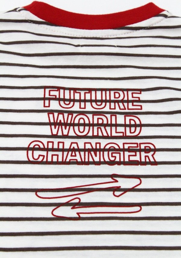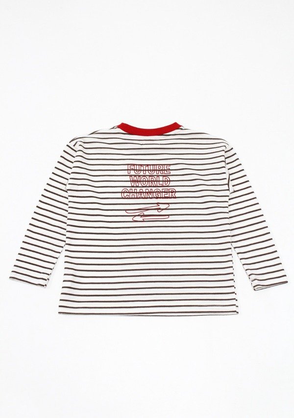 Remera manga larga confeccionada en jersey rayado 100% algodón. Presenta estampa central de osito que aporta un toque lúdico y canchero, ideal para la línea minis. El cuello contrastante realza el diseño y suma un detalle diferencial. Prenda liviana y versátil, pensada para el uso diario durante el invierno.