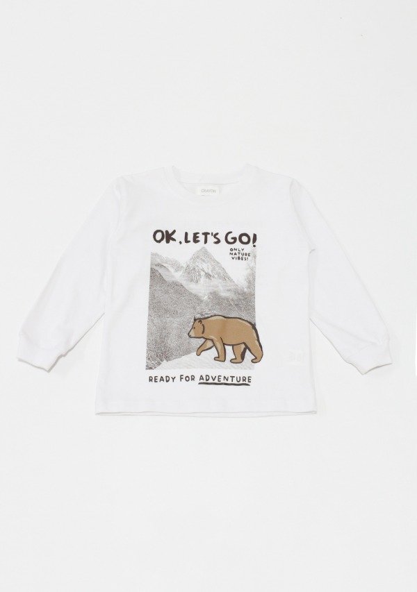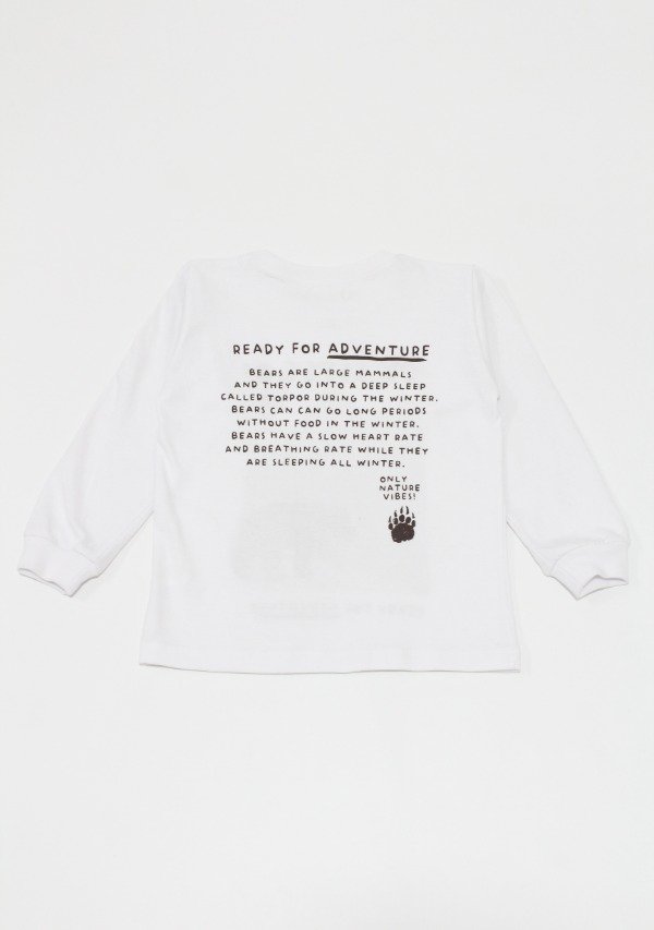 Remera manga larga confeccionada en algodón blanco y cuello redondo. Con estampa en frente y espalda.