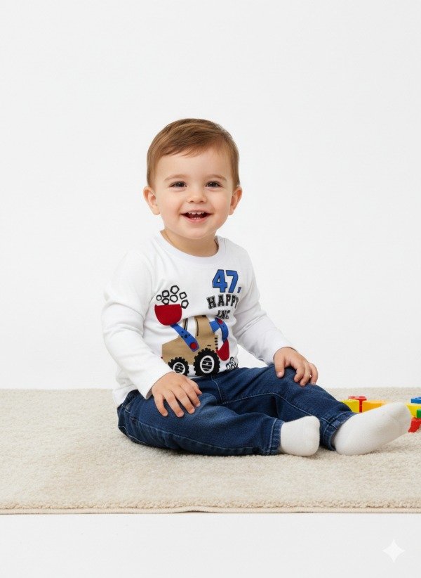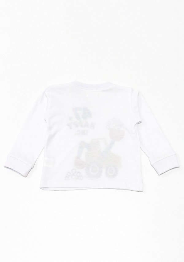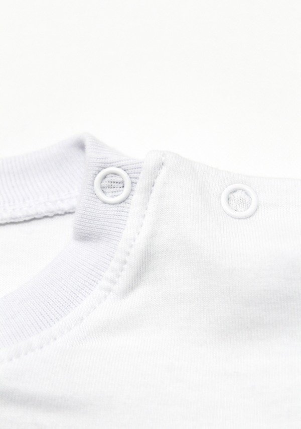 Remera manga larga de algodón blanco. Tiene cartera con broches al tono y estampa en el frente.