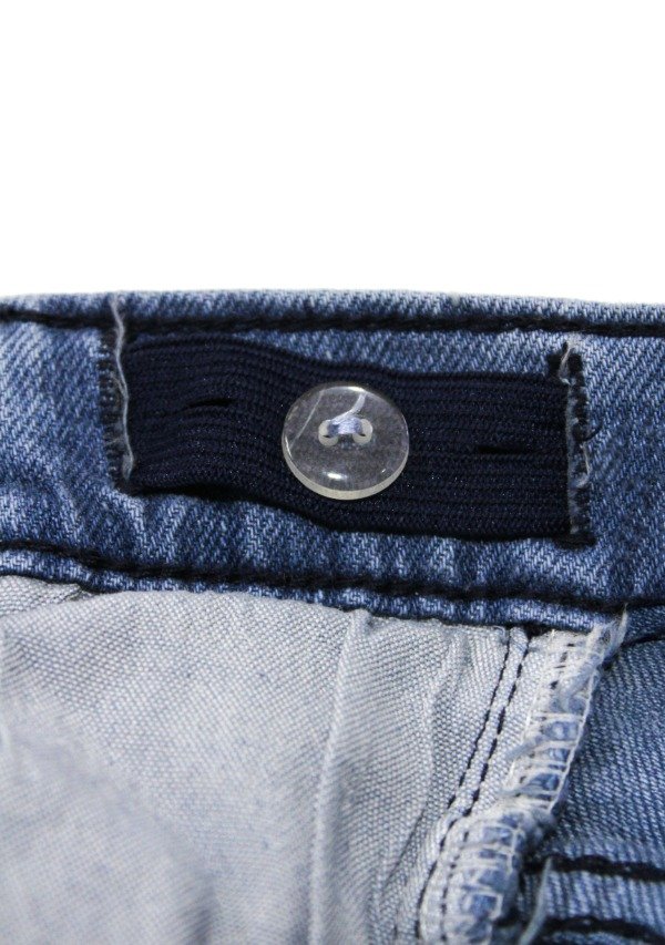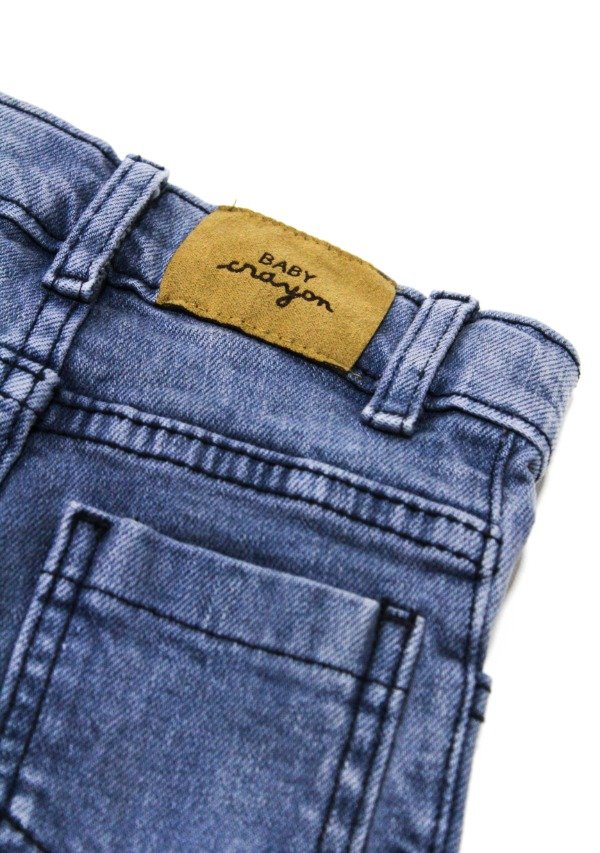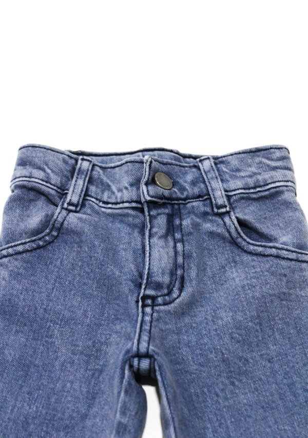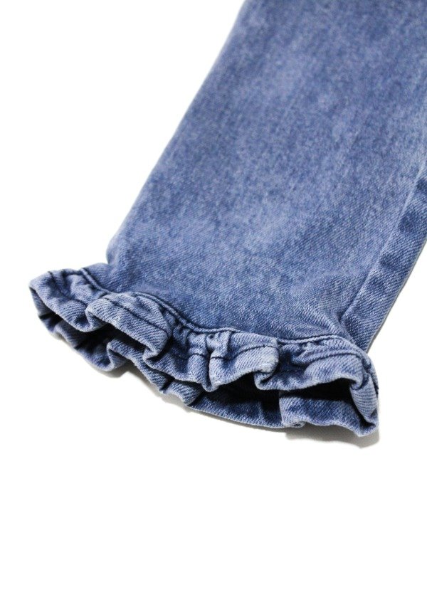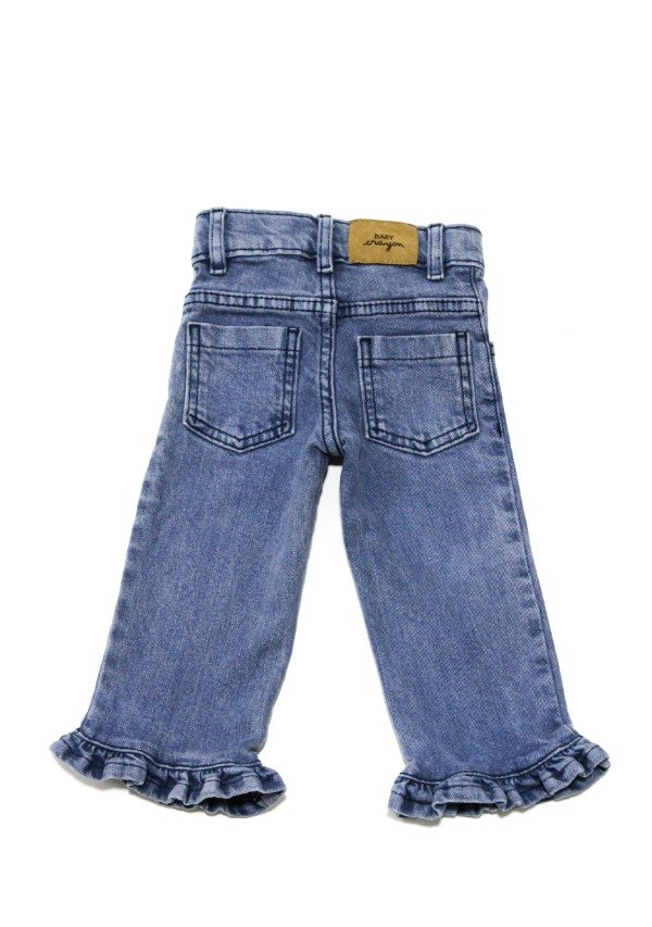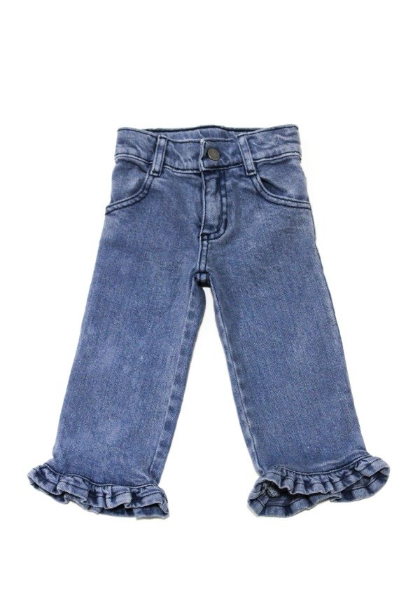 Pantalón de jean recto con volados gastados en el ruedo. Cierre y botón metálico. Bolsillos delanteros y traseros. La prenda se puede regular en su interior.