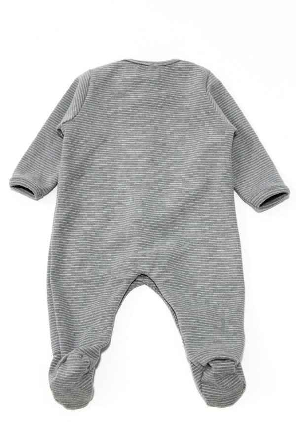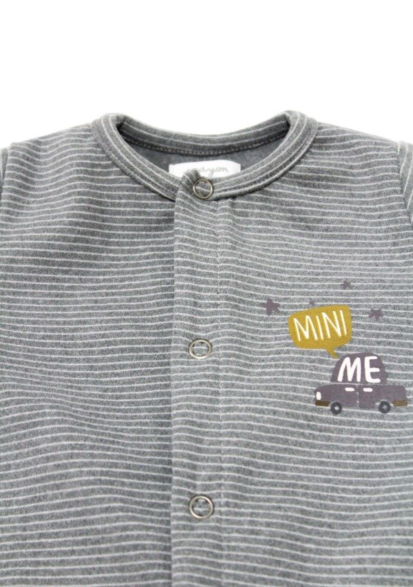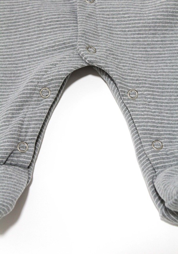 Enterito largo en darlon rayado (frisado) con broches en todo el frente. Detalle de estampa.