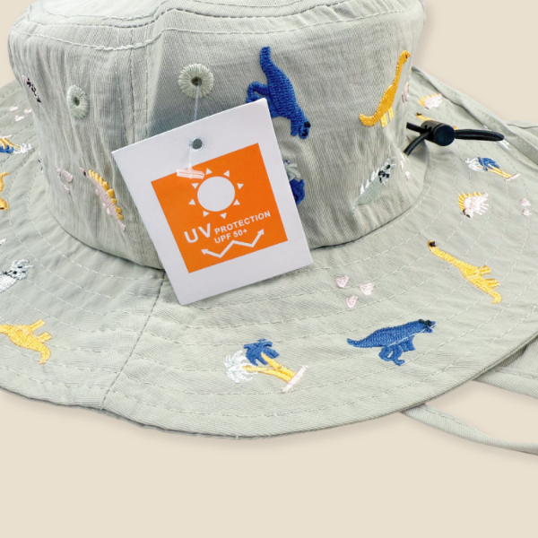 Está confeccionado en tela liviana, respirable e impermeable, con protección solar UV50, visera ancha y una solapa trasera que cubre la nuca, perfecta para días de playa, campo o paseo.
