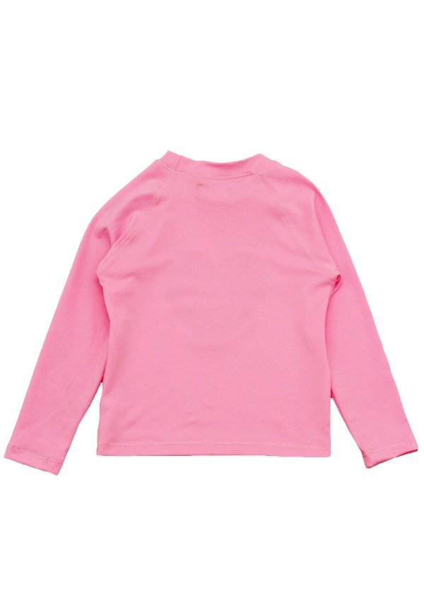 Remera manga larga UV +50 rosa fluo con estampa en el frente.