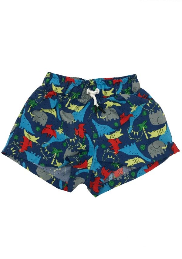Short de baño de microfibra azul estampada. La cintura es elastizada y tiene cordón todo alrededor para regular su calce. Cuenta con suspensor red interna. Tiene bolsillo trasero.