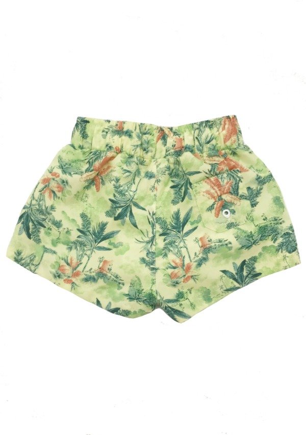 Short de baño de microfibra estampada amarilla, cintura elastizada con cordón que corre alderredor de la cintura con puntera de silicona. Tiene suspensor interno.