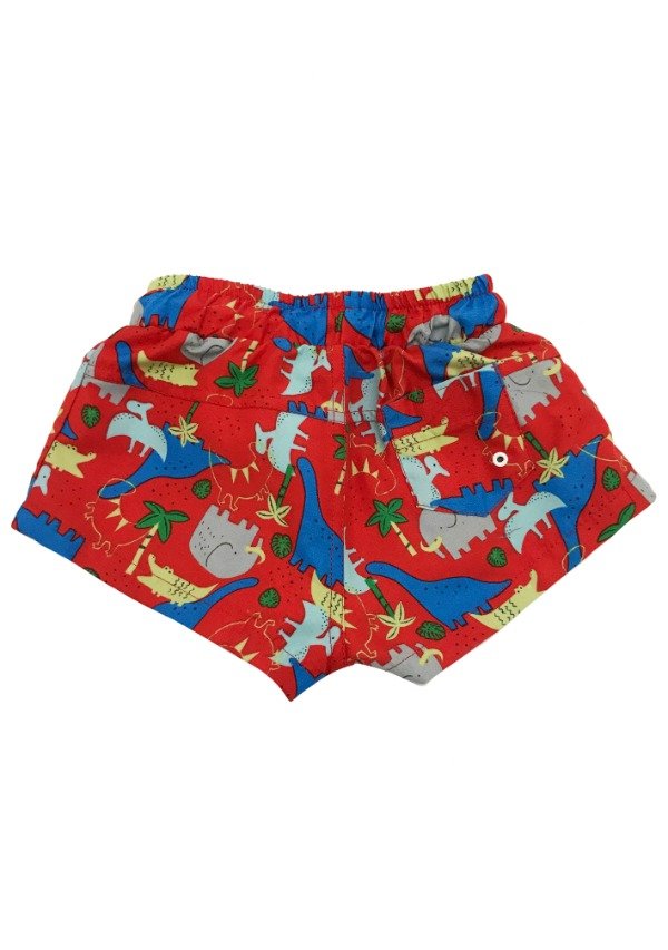 Short de baño de microfibra estampada dinosaurios. Tiene cintura elastizada y cordón alrededor para regular su calce. Detalle de bolsillo trasero.